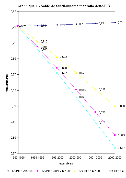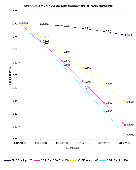 Tableau 2 - Répercussions de différents soldes de fonctionnement sur le ratio dette/PIB
