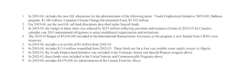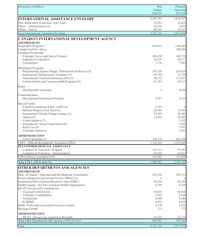 In terms of planned program expenditures for 2003-2004, some observable changes from the preceding fiscal year include: an increase of approximately $372 million in CIDA’s geographic programs spending; an increase of about $16 million in funding for International Financial Institutions (IFIs); a small decrease ($250,000) in funding for UN and Commonwealth programs; a decrease of over 40% in funding for Balkans programs; and a small decrease in funding for the International Climate Change Strategy.