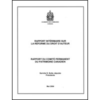 Ce rapport est l’aboutissement du travail abattu jusqu’en mai 2004 par le Comité permanent du patrimoine canadien sur six enjeux relatifs au droit d’auteur : la copie privée et la ratification de l’Organisation mondiale de la propriété intellectuelle (OMPI); les œuvres photographiques; la responsabilité des fournisseurs de service Internet; l’utilisation du matériel accessible sur Internet à des fins éducatives; l’apprentissage amélioré par les technologies et les prêts interbibliothèques. Il contient des recommandations.