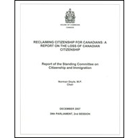 Reclaiming citizenship for Canadians : a report on the loss of Canadian citizenship / Chair: Norman Doyle.: XC64-392/1-1-03