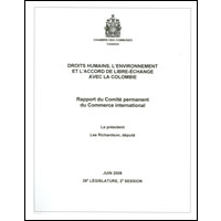 Droit humains, l'environnement et l'Accord de libre-échange avec la Colombie / Président: Lee Richardson.: XC75-392/1-1-03