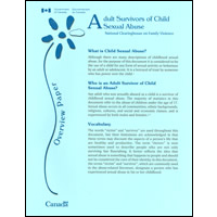 This overview paper summarizes information on child sexual abuse and its impacts on adult survivors. It outlines some of the relevant terminology, identifies characteristics of male and female survivors and explores stages of recovery. The overview paper also explains how family and friends can help and provides a list of suggested reading material.