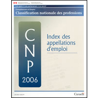 La Classification nationale des professions (CNP) est la taxonomie officiellement reconnue à l'échelle nationale des professions qui forment la marché du travail canadien et elle en constitue le cadre organisationnel. L'édition 2006 de la CNP remplace la version originale ainsi que la Classification type des professions (CTP), système parallèle datant de 1991 de Statistique Canada. La Classification nationale des professions (CNP) décrit les professions des Canadiens et permet de normaliser la compréhension de la nature du travail. Les statisticiens, les analystes du marché du travail, les conseillers d'orientation professionnelle et les particuliers qui se cherchent un emploi disposent ainsi d'un système pour structurer et interpréter les statistiques et d'autres éléments factuels sur le marché du travail. (Développement des resources humaines Canada)