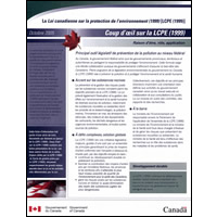 Cette fiche d’information fait partie d’une série de trois documents qui donnent un aperçu de la Loi canadienne sur la protection de l’environnement (1999) [LCPE (1999)]. Coup d’œil sur la LCPE (1999) contient une brève présentation de la Loi.
