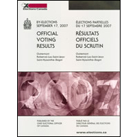 Élections partielles du 17 septembre 2007 : résultats officiels du scrutin - Outremont, Roberval-Lac-Saint-Jean, Saint-Hyacinthe-Bagot / publié par le Directeur général des élections du Canada.: SE1-2/2007-1-PDF