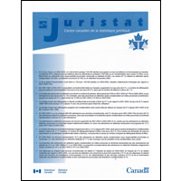 Ces rapports en série présentent des statistiques et de l'analyse détaillées des divers sujets et questions portant sur le système de justice pénale au Canada. Les Juristat annuels sont basés sur des sujets tel que : la criminalité, l'homicide, les tribunaux de la jeunesse et pour adultes et les services correctionnels. À chaque année, des Juristat additionnels sont rédigés et abordent des questions actuelles qui préoccupent la communauté de la justice. Ce périodique unique en son genre intéresse grandement les personnes chargées de planifier, de mettre sur pied, d'administrer et d'évaluer les programmes et les projets dans le domaine de la justice ou toute personne qui s'intéresse à l'appareil judiciaire canadien.